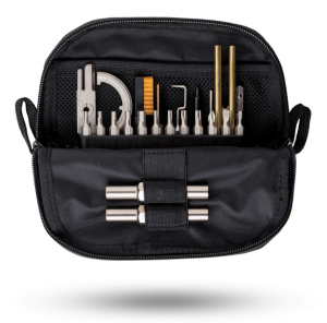 Zawiera specjalistyczne narzędzia i bity niezbędne do demontażu, montażu, czyszczenia i regulacji w trakcie użytkowania broni.
